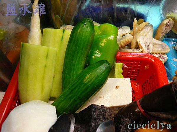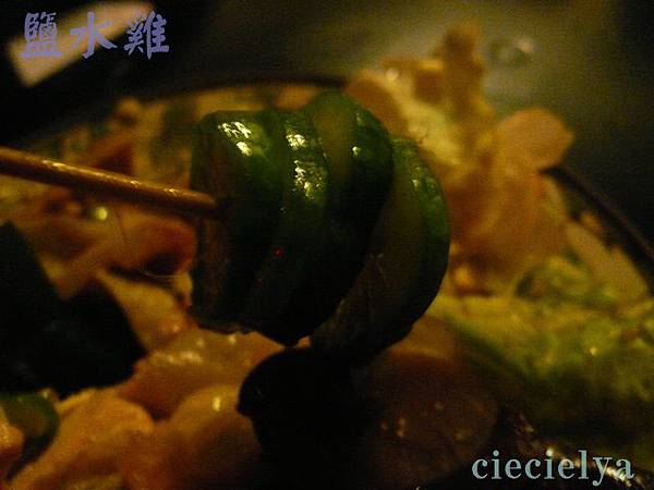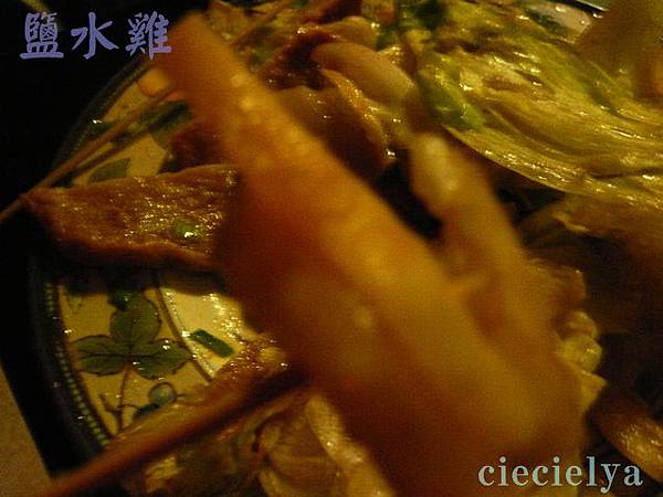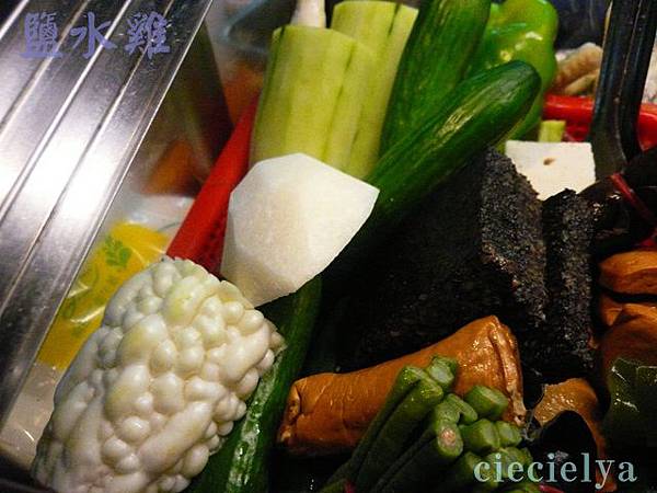 有苦瓜。 說也奇怪了,這些蔬菜跟鹽水雞配在一起,真是好吃,可能是有雞湯的鮮味,所以這些蔬菜清脆解膩。
